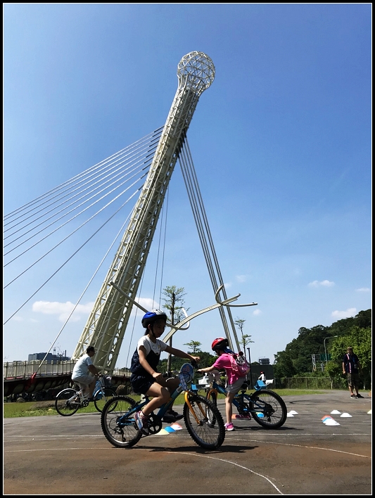【關卡三】單車考照教室:讓小朋友挑戰各式路況,來進行進階騎乘技巧。(地點:星光橋下廣場)