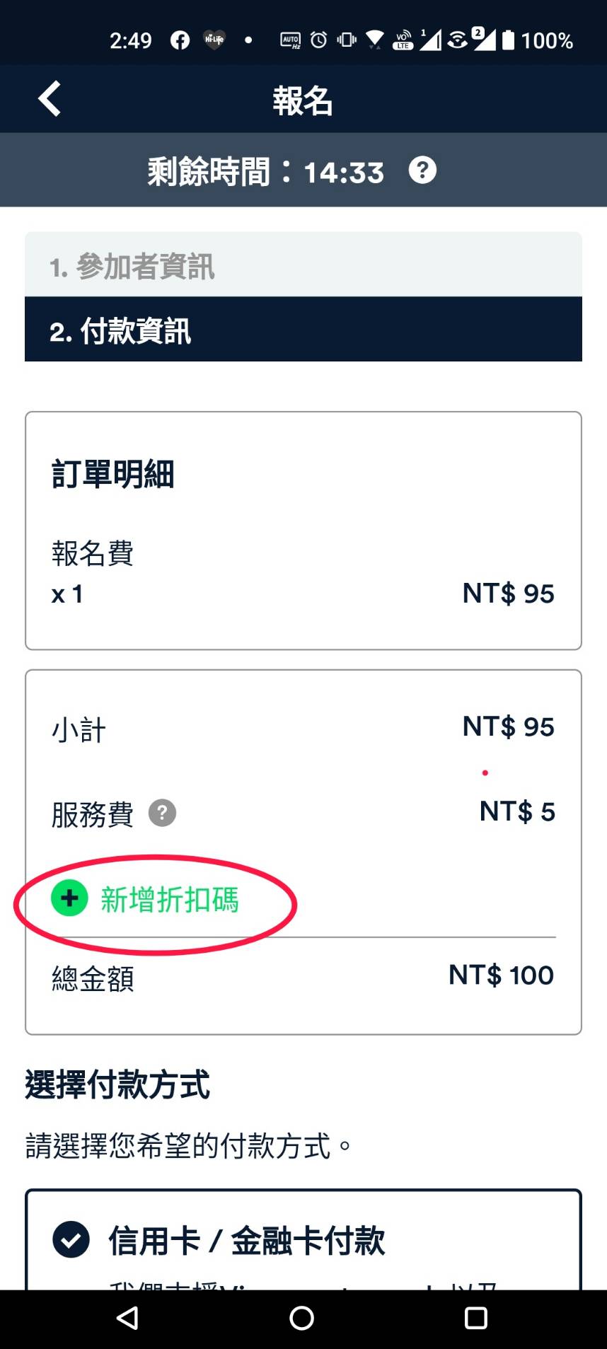 結帳前務必按下"新增折扣碼"輸入折扣碼