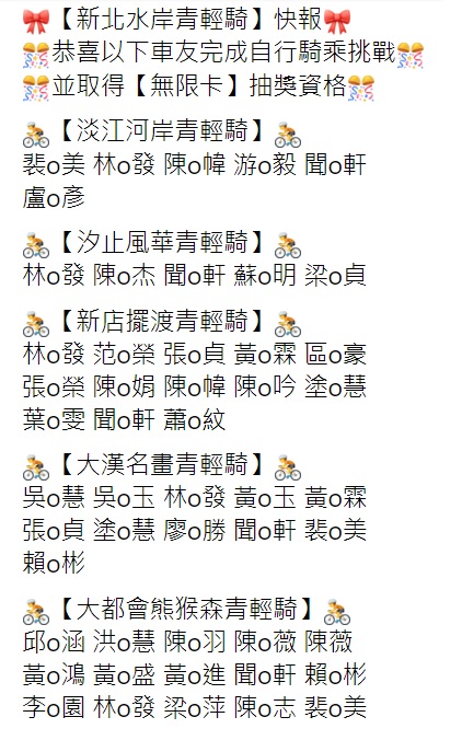 4.主辦單位將完騎確認名單輸入系統後,由電腦程式自動抽出中獎者,6月22日於報名網站公佈得主